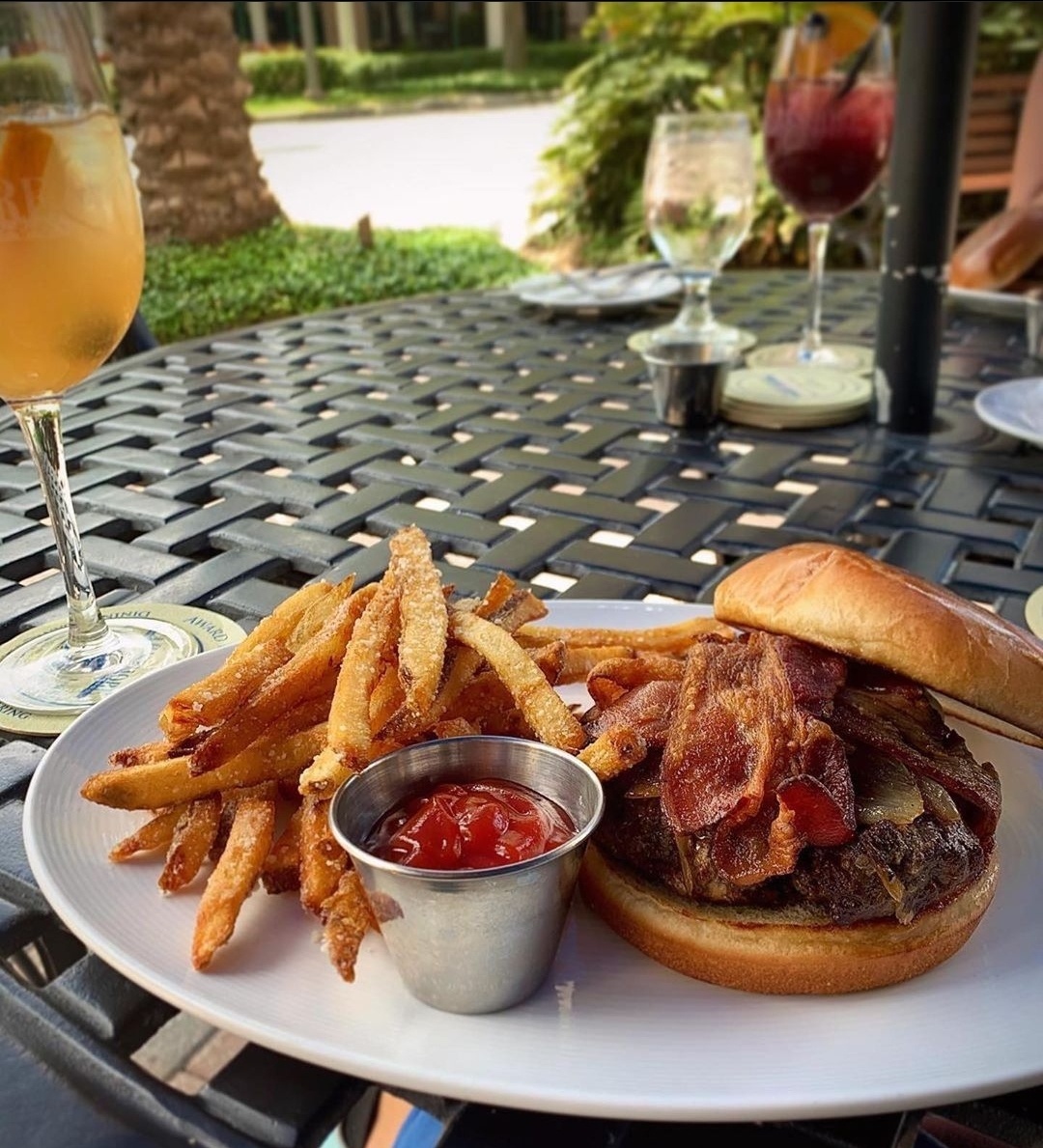 Applewood Smoked Bacon, Caramelized Onions, Blue Cheese, Parmesan Fries. 22