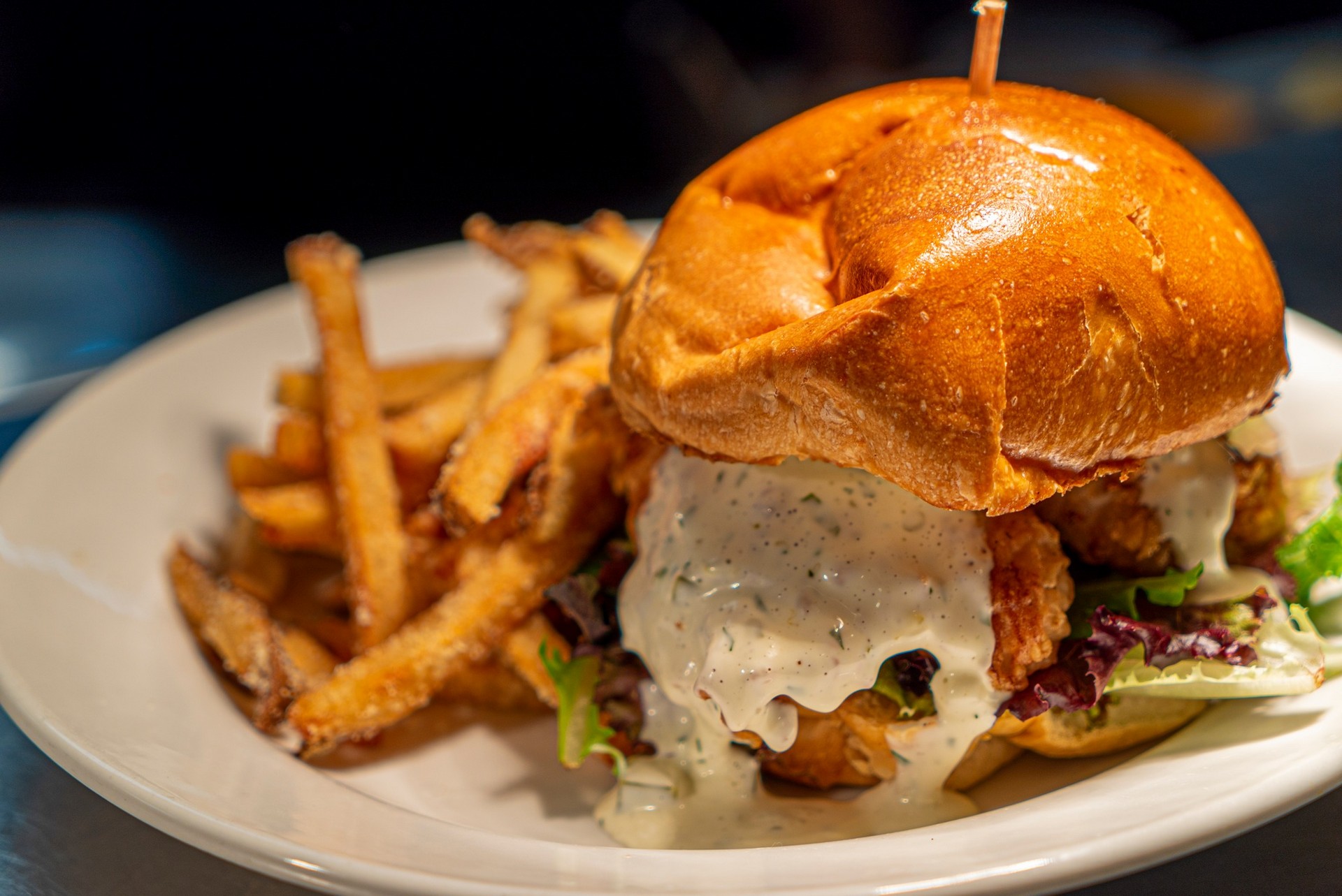Garlic Aioli, Citrus, Pickled Onion, Arugula, Brioche Bun, Parmesan Fries. 20